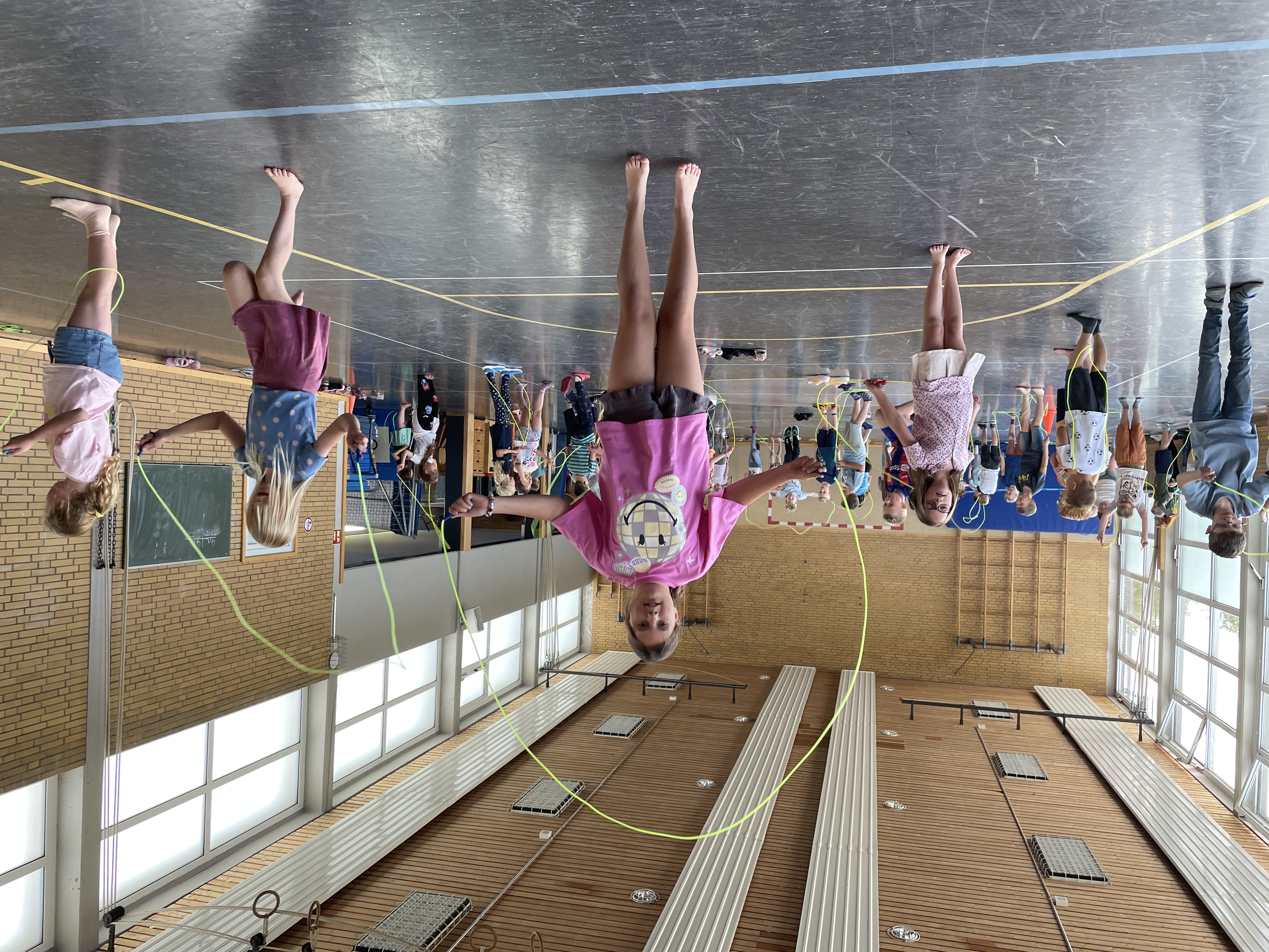 Die dritten Klassen unserer Grundschule Bisperode haben - so oft wir bei der Bewerbung um diesen tollen Workshop ausgewählt werden - die Gelegenheit, das Rope zu schwingen und gemeinsam mit einem erfahrenen Workshopleiter das Thema "Springen mit dem Rope, dem Springseil" einzuüben. Auch am 19.06.2025 war es dann für die Schülerinnen und Schüler der Klassen 3a und 3b wieder soweit. Von 10.00 Uhr bis 11.30 Uhr wurden unterschiedliche Sprünge, Einzelübungen, Partnerübungen und Gruppenübungen einstudiert. Dann gab es eine kurze Verschnaufpause. Gegen 11.45 Uhr durften die Drittklässler dann allen Kindern und Lehrkräften ihre Künste darbieten. Zum Abschluss konnte jeder zuschauende Gast die Gelegenheit nutzen, sich selbst ein Rope zu schnappen, um eigene Sprünge zu testen und auszuprobieren.