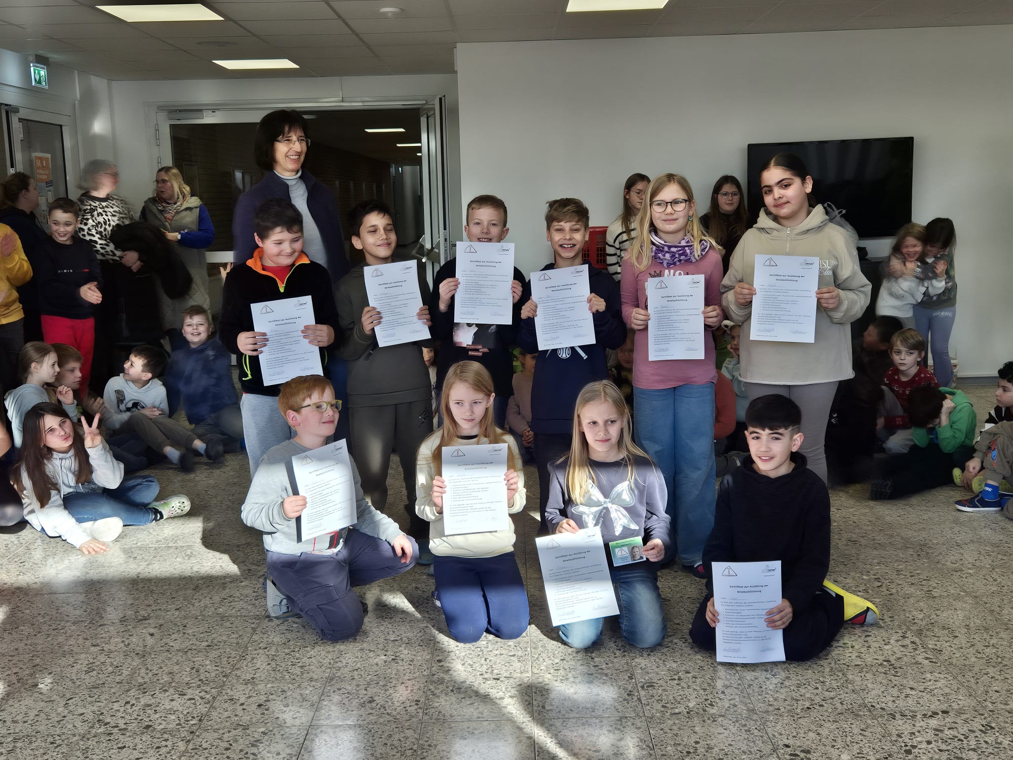 Im Februar-Montagskreis nahmen zehn Jungen und Mädchen aus der dritten und den vierten Klassen stolz ihr Streitschlichter-Zertifikat in Empfang. Im vergangenen Halbjahr haben diese im Rahmen einer Arbeitsgemeinschaft erfolgreich an der Streitschlichterausbildung teilgenommen. Sie haben einen ritualisierten Gesprächsablauf kennengelernt und in Rollenspielen eingeübt, wie man Kindern helfen kann, eine Lösung für einen Streit zu finden.